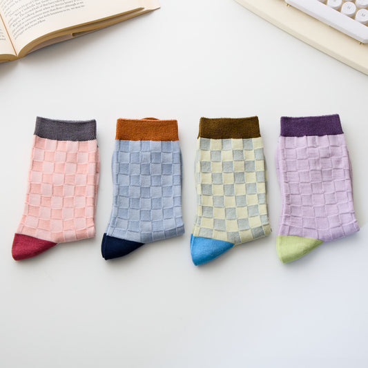 2-Pack CheckerBoard Socks: Warm Knitted Cotton Comfort for Every Step