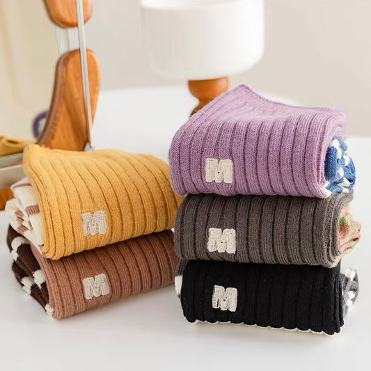 2-Pack Vintage Socks: Knitted Cotton Crew Socks for Women