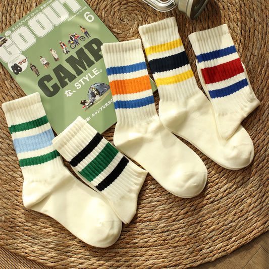 2-Pack Retro Men's Stripe Socks: Vintage Knitted Cotton Athletic Comfort