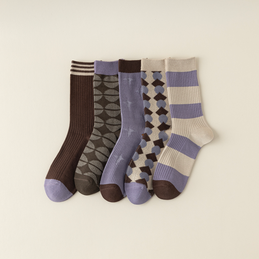 2-Pack Retro Striped Cotton Socks – Purple & Stylish
