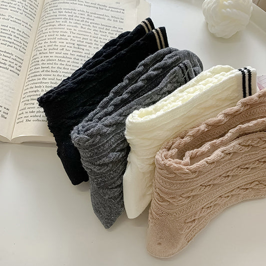 2-Pack Retro Cotton Twist Socks – Solid & Elegant