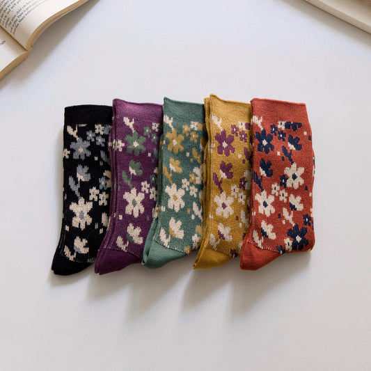 2-Pack Retro Floral Socks: Warm Knitted Cotton Elegance for Women