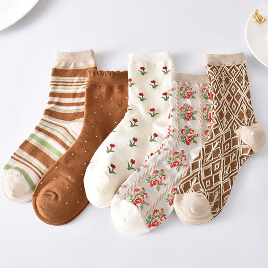 5-Pack Brown Cotton Socks: All-Season Versatile Women's Socks