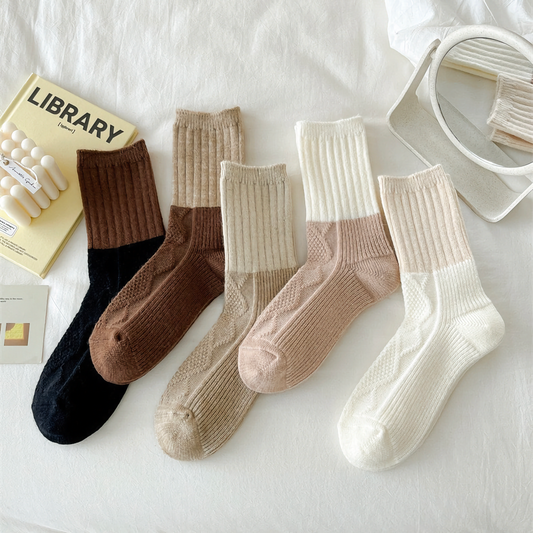2-Pack Women's Vintage Warm Wool Socks: Color-Block Wool Socks