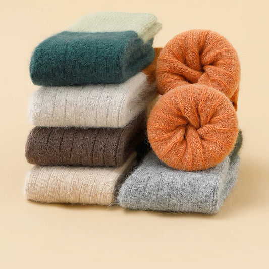 3-Pack Kids' Wool Socks - Warm Winter Angora & Merino Blend, Colorblock Style