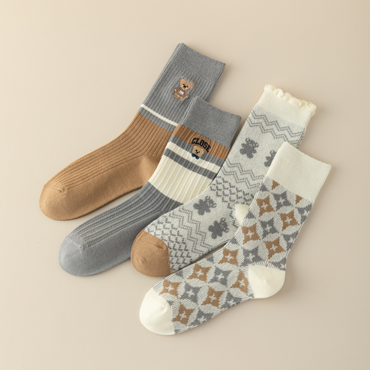 2-Pack Women's Grey Cotton Socks: Stylish Bear Pattern for Cozy Comfort