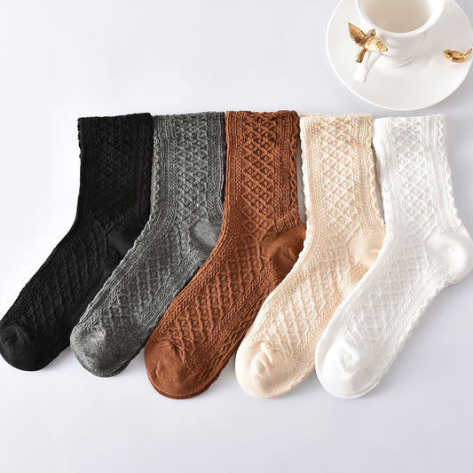 5-Pack Classic Solid Color Retro Cotton Socks for Women