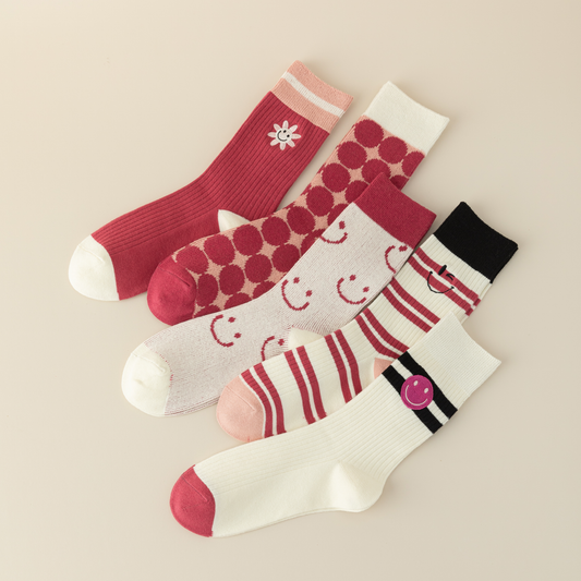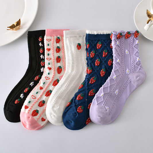 5-Pack Cute Strawberry Cotton Crew Socks for All Seasons