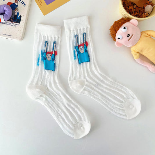 2-Pack Women’s Mesh Sheer Socks – Fun Cartoon Look for Summer