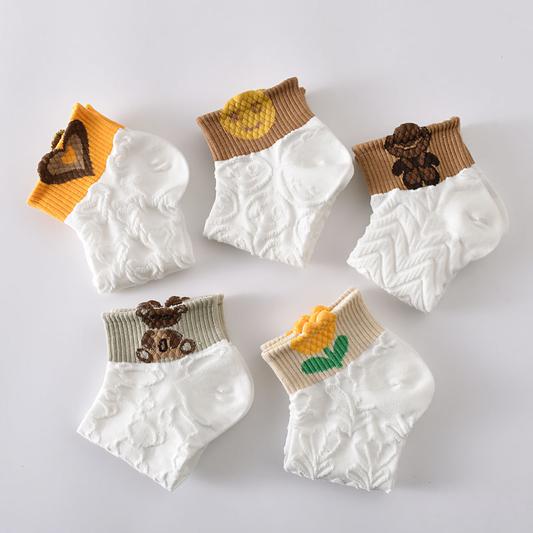 5-Pack Cute Pattern Ankle Socks: Soft Knitted Cotton Low-Cut Elegance