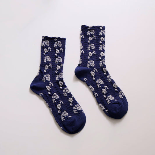 2-Pack Women’s Vintage Floral Cotton Crew Socks – Textured Knit