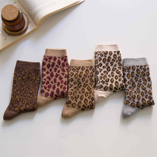 2-Pack Women’s Leopard Print Cotton Crew Socks – Retro Style