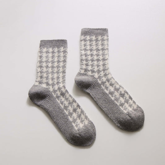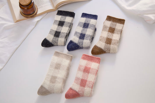 2-Pack Women's Wool Checkerboard Winter Socks – Warm Knit Crew