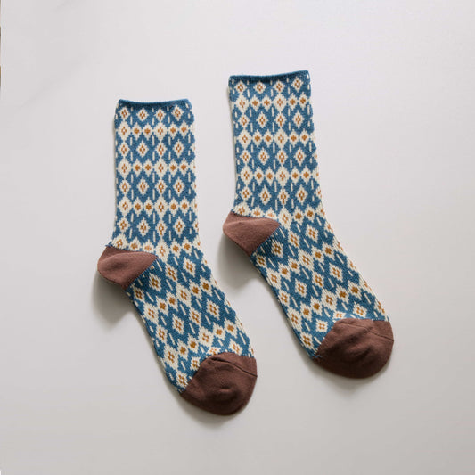 2-Pack Women’s Vintage Floral Diamond Cotton Crew Socks