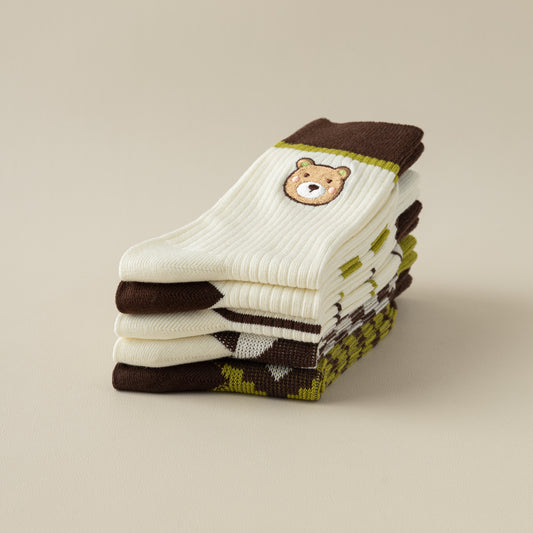 5-Pack Retro Coffee Brown Cotton Socks for Autumn/Winter