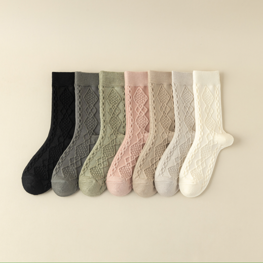 2-Pack Vintage Cashmere Embossed Wool Socks - Macaron Colors for Women