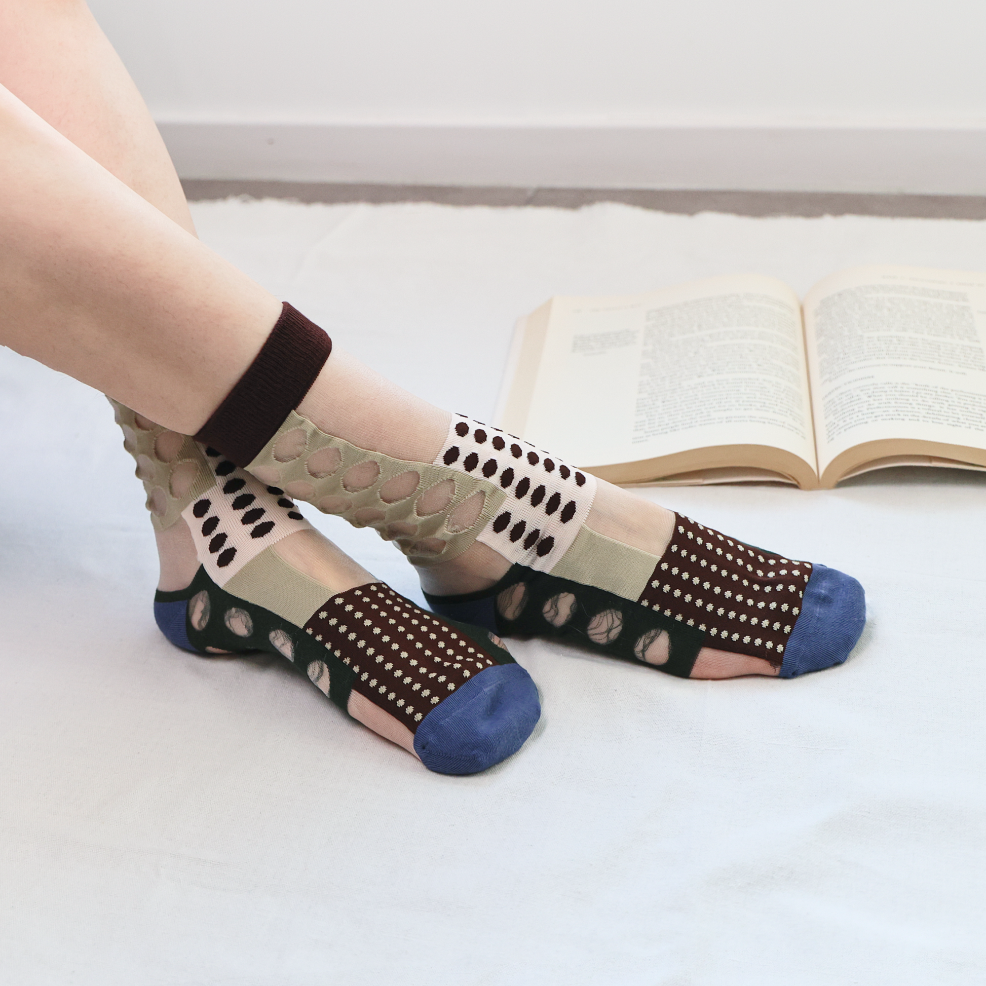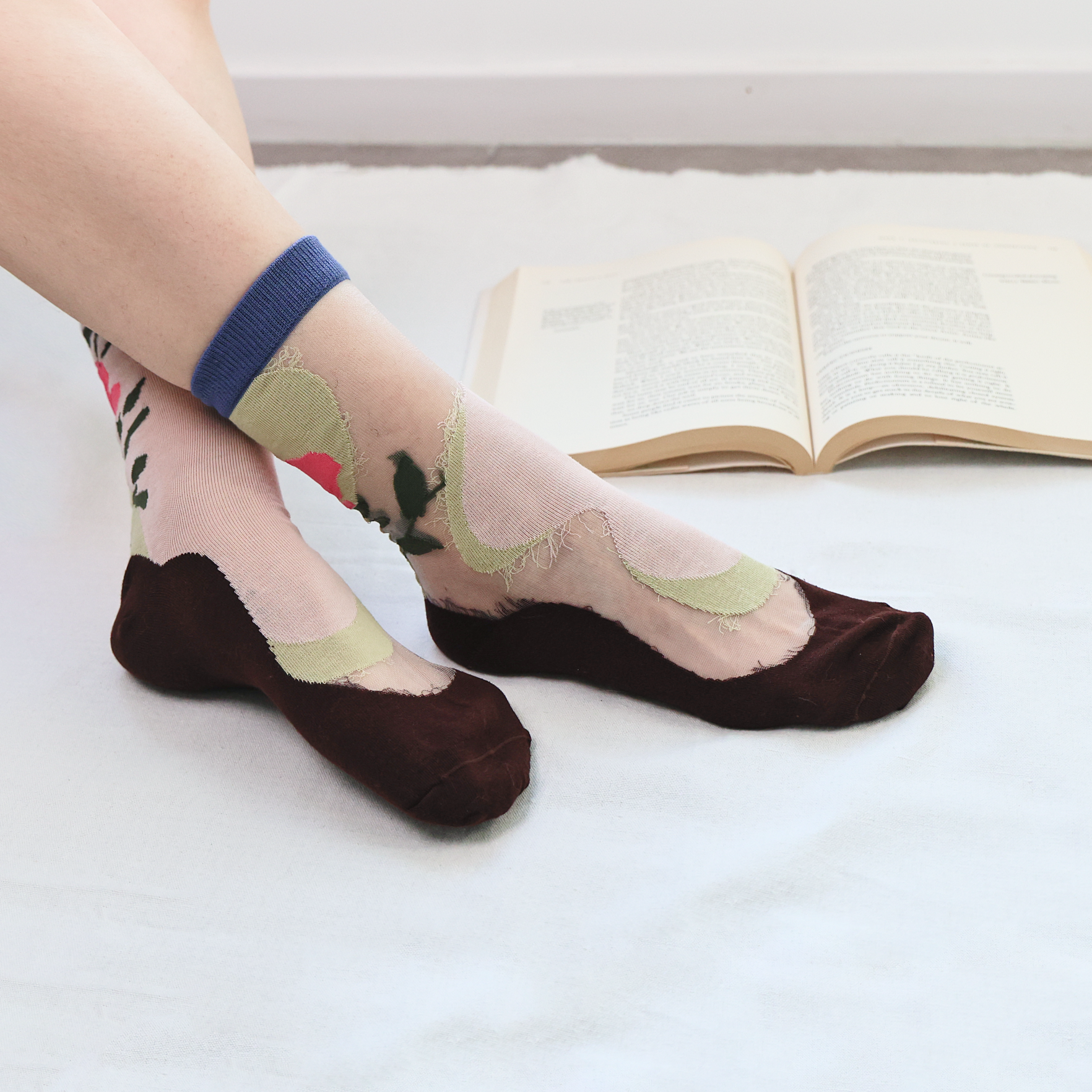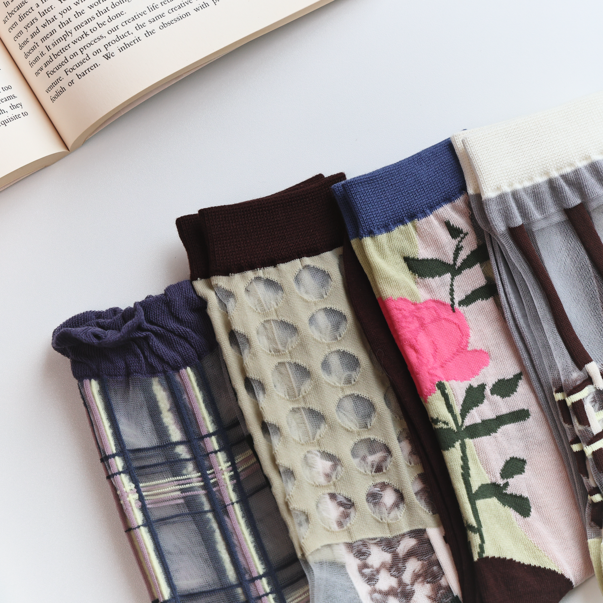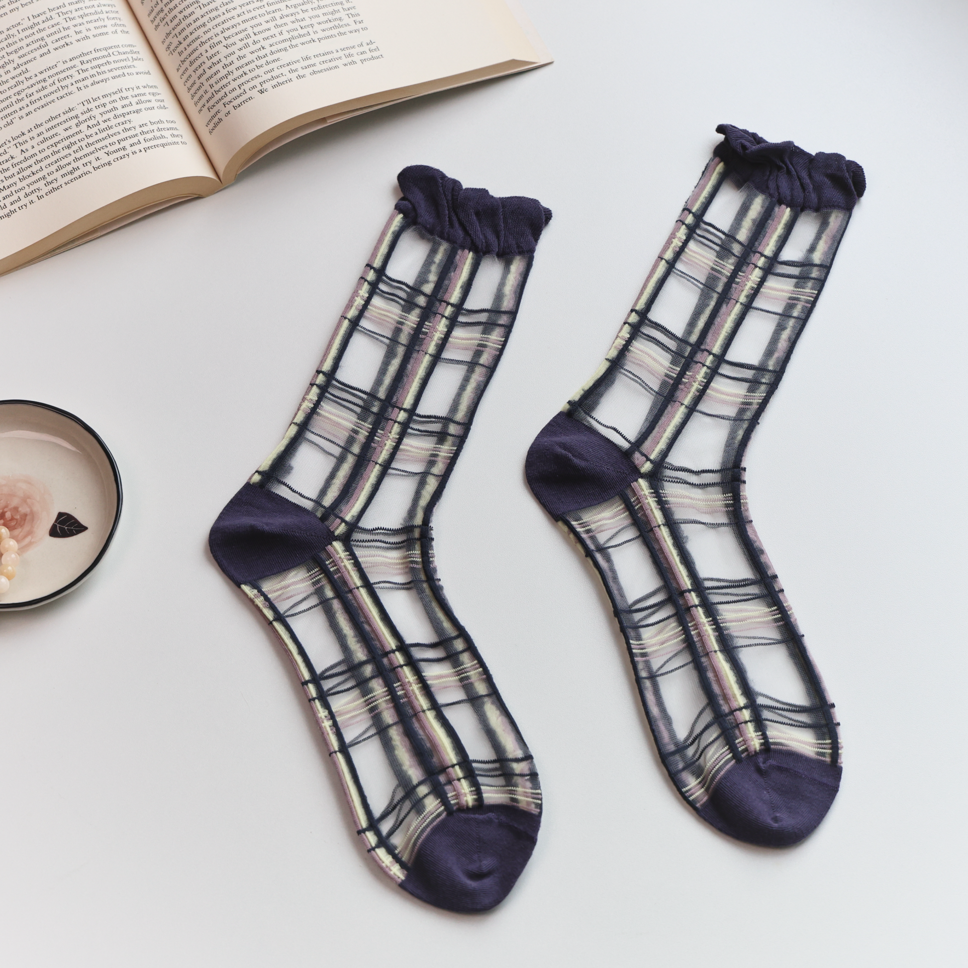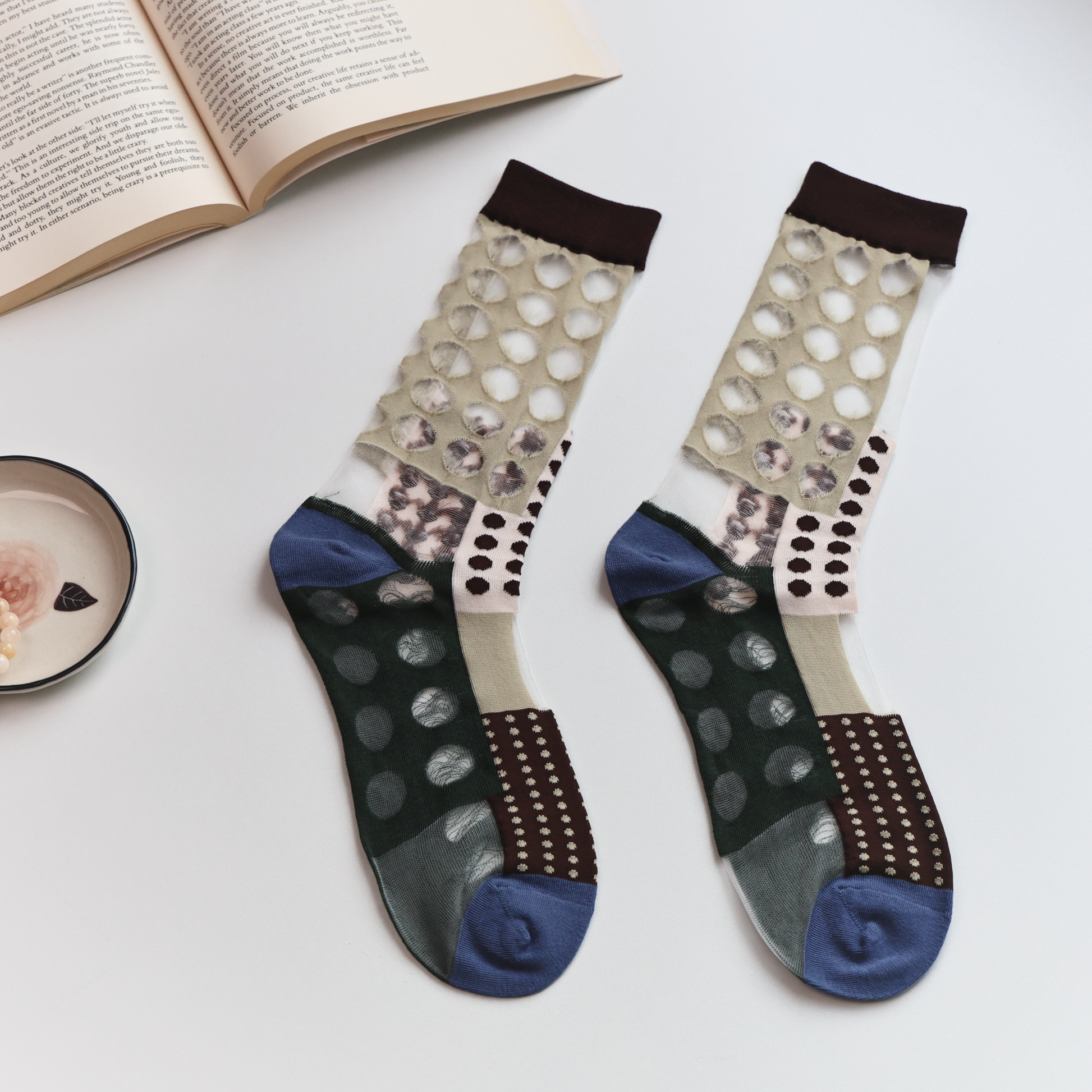 Add a vintage twist to your summer look with these retro sheer socks. Featuring breathable cotton-blend comfort and delicate floral and geometric details – perfect for everyday charm.