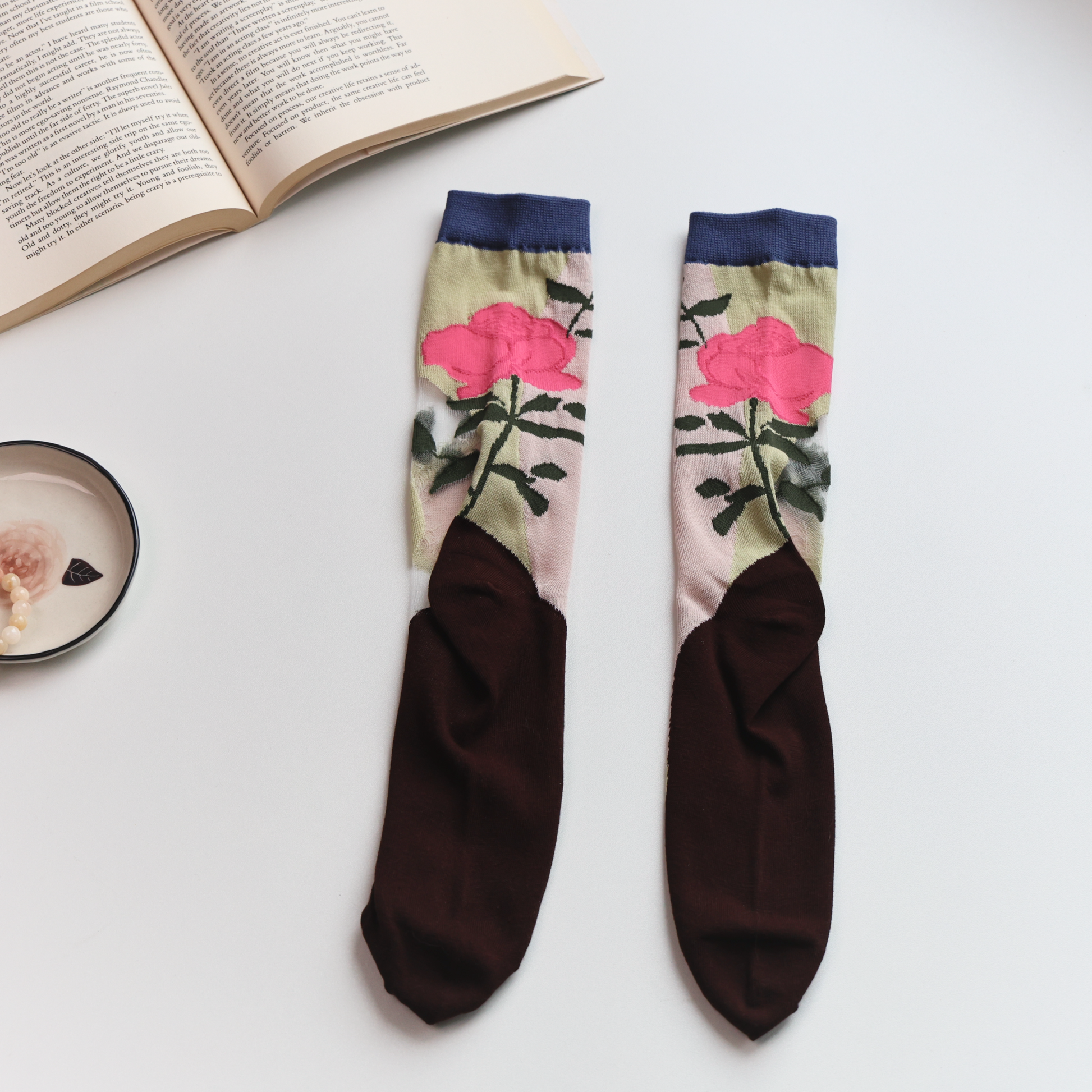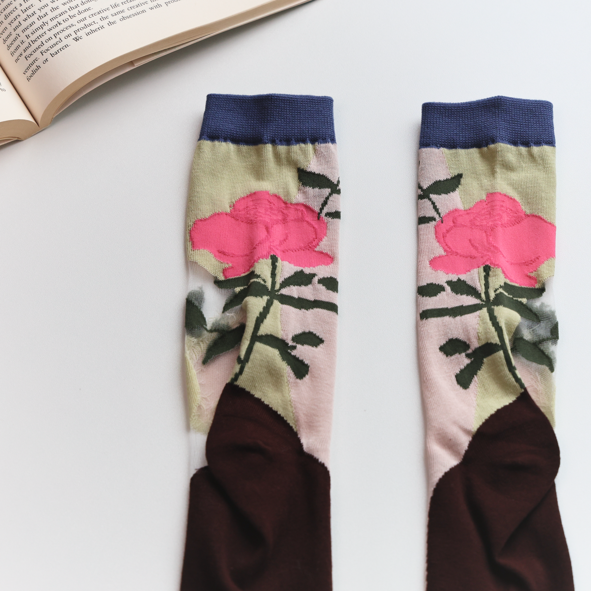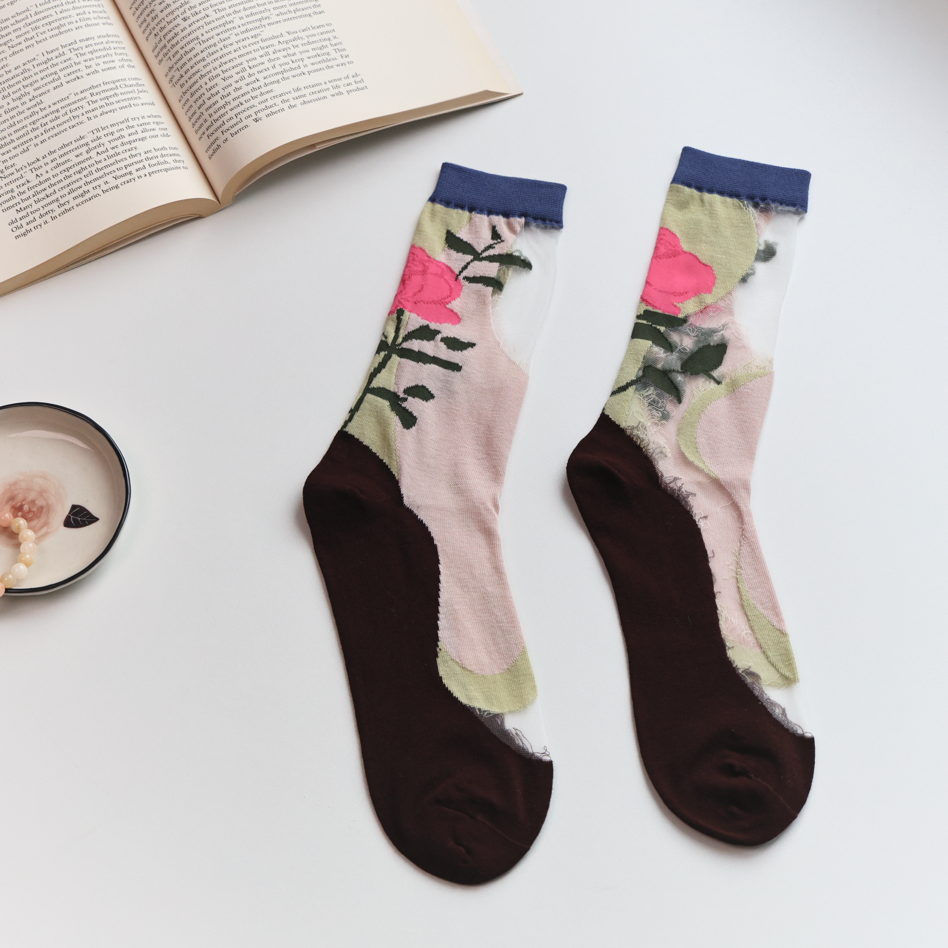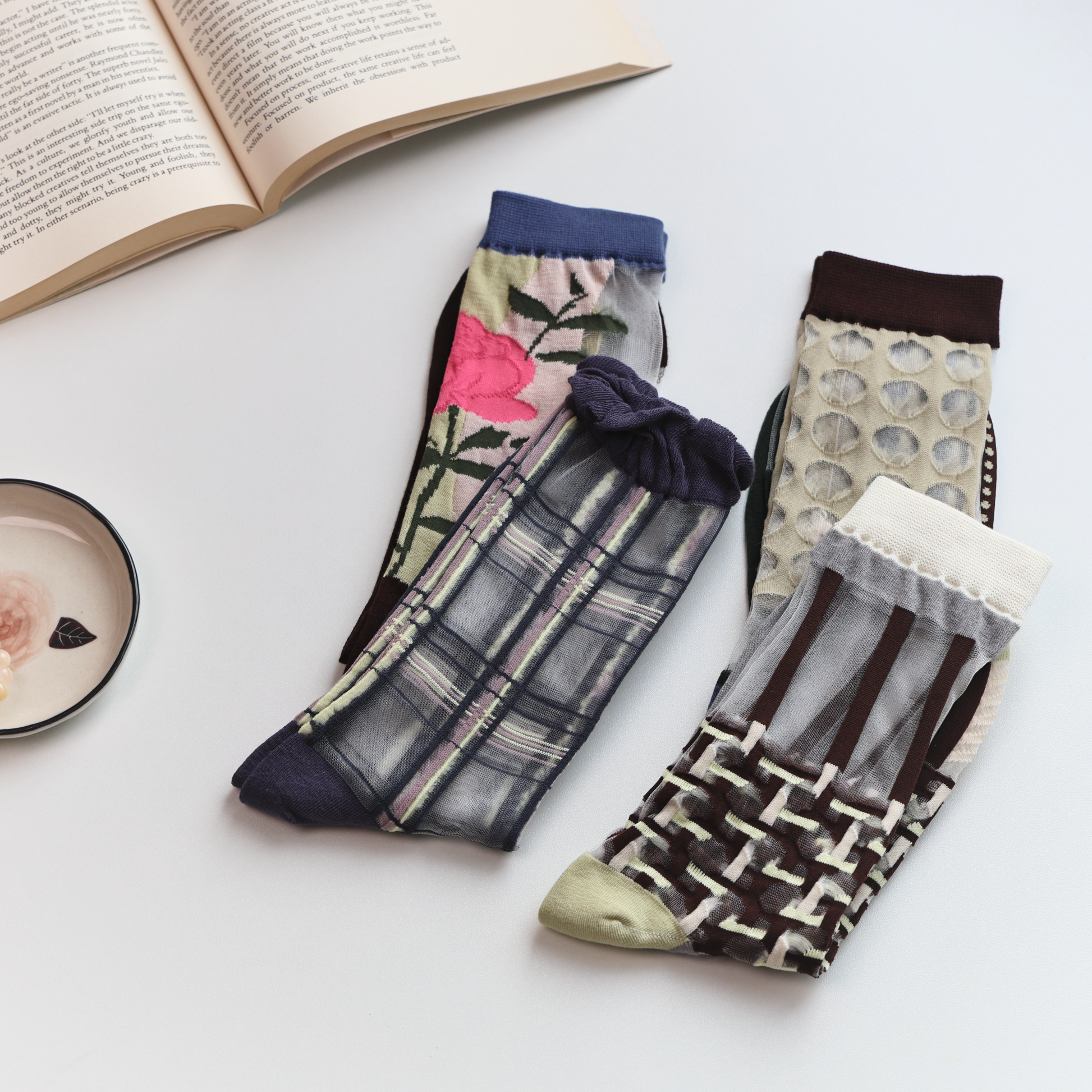 2-Pack Retro Sheer Socks for Women – Floral & Graphic Design
