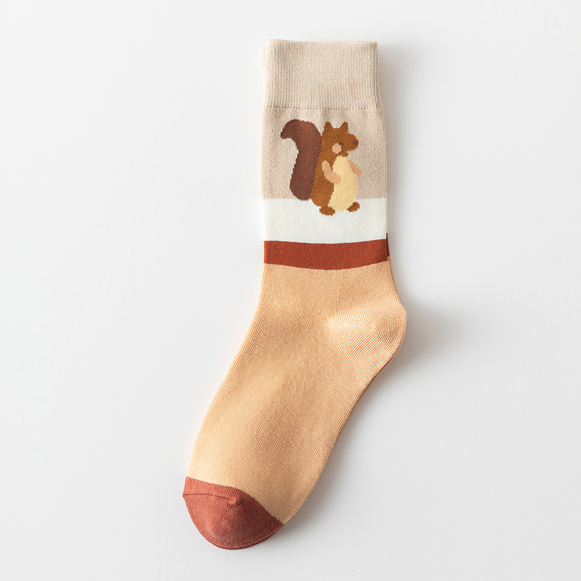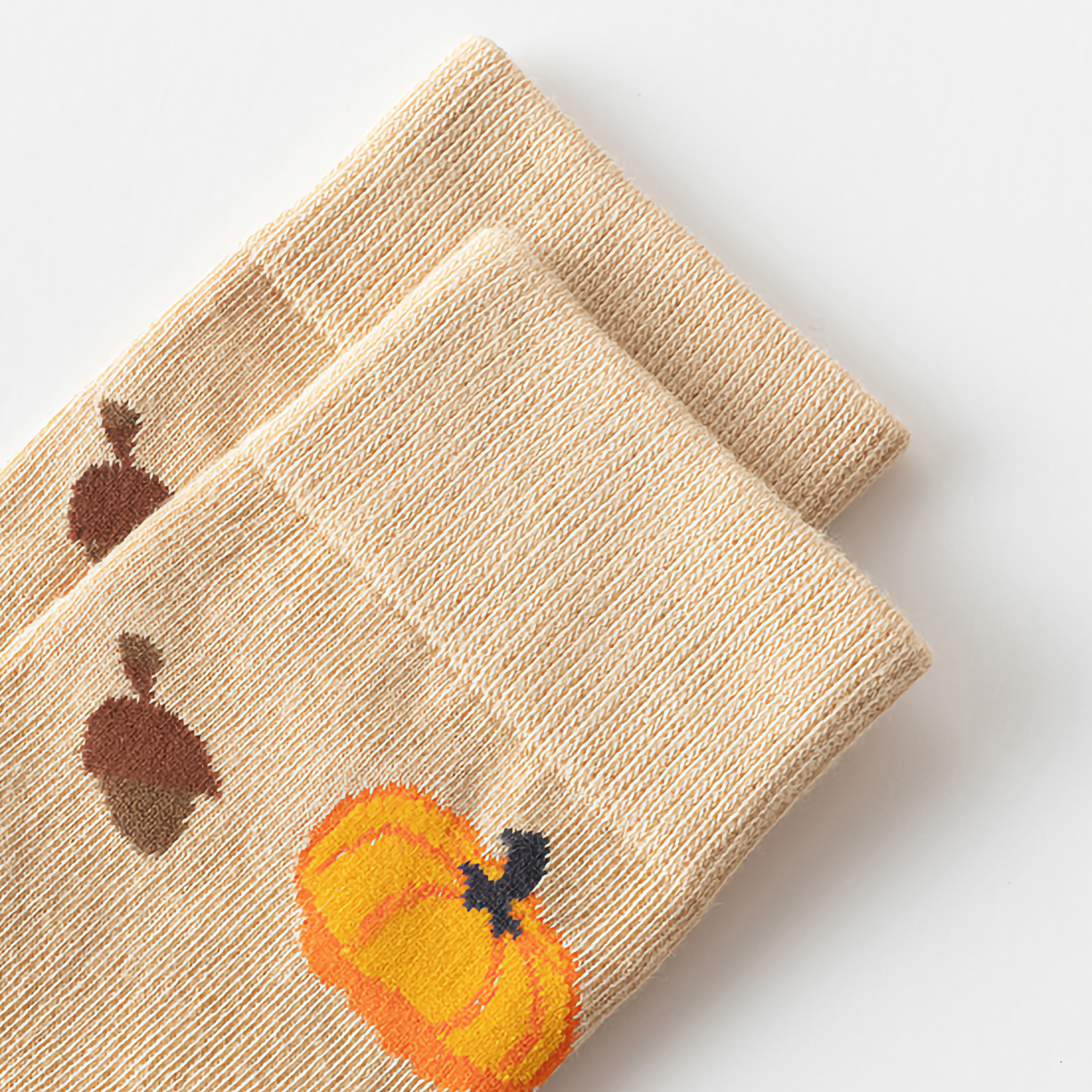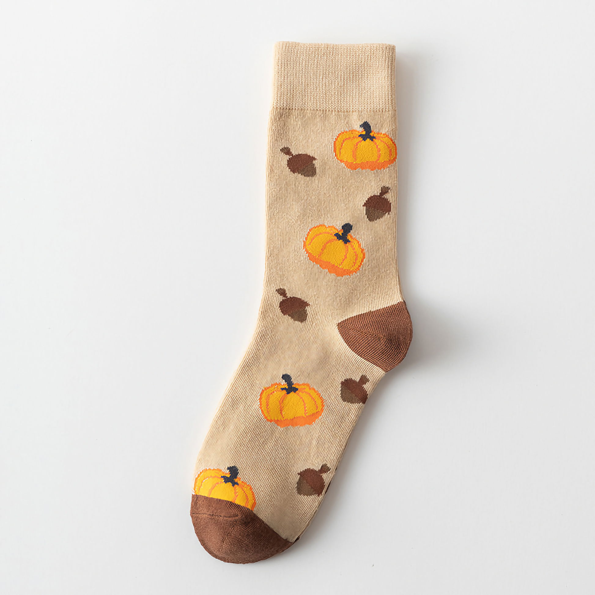Celebrate Halloween with unisex cotton crew socks featuring fun pumpkin and squirrel cartoon designs. Perfect for festive flair and comfort.