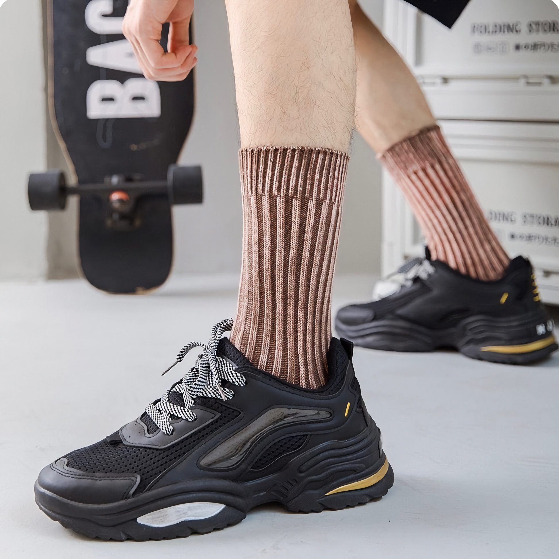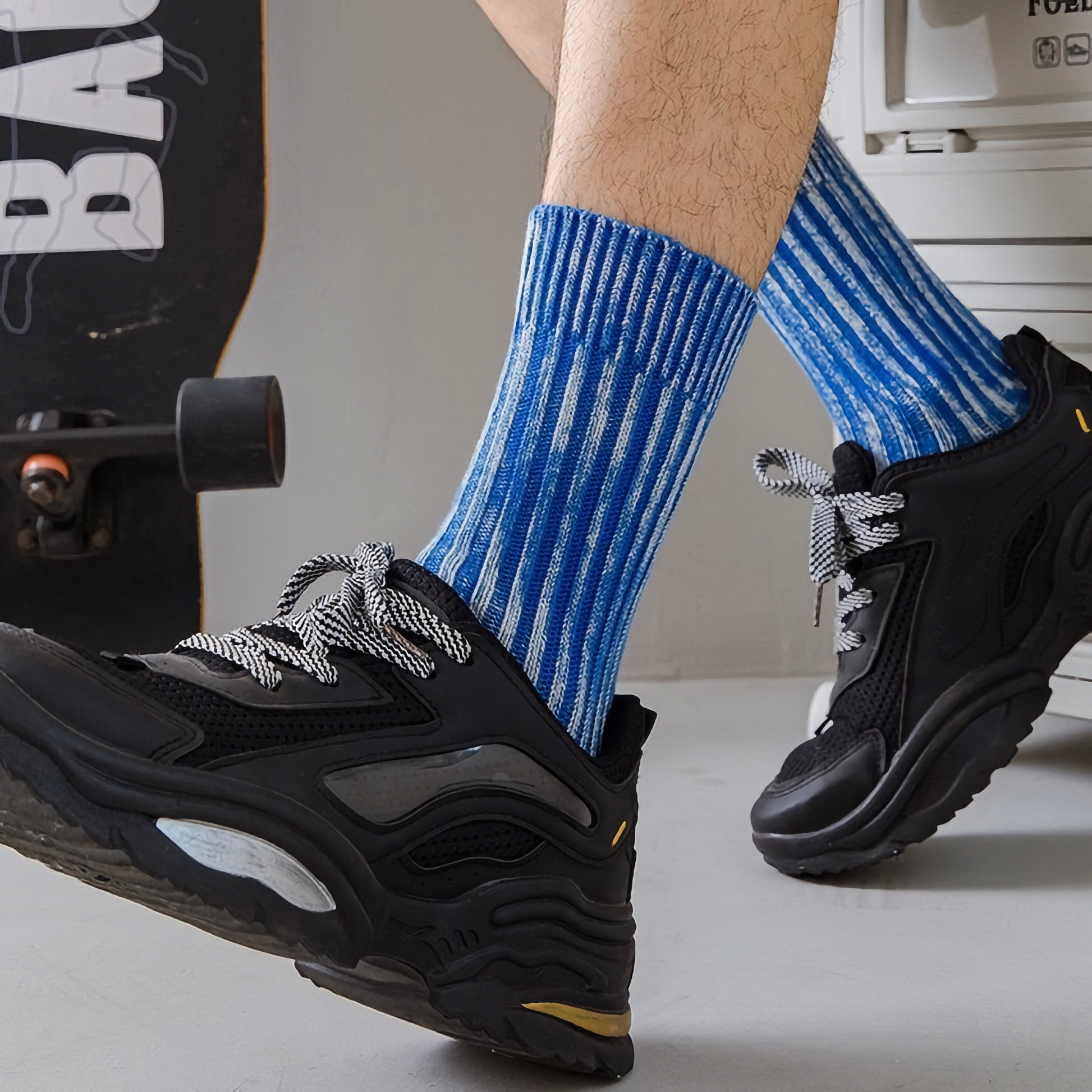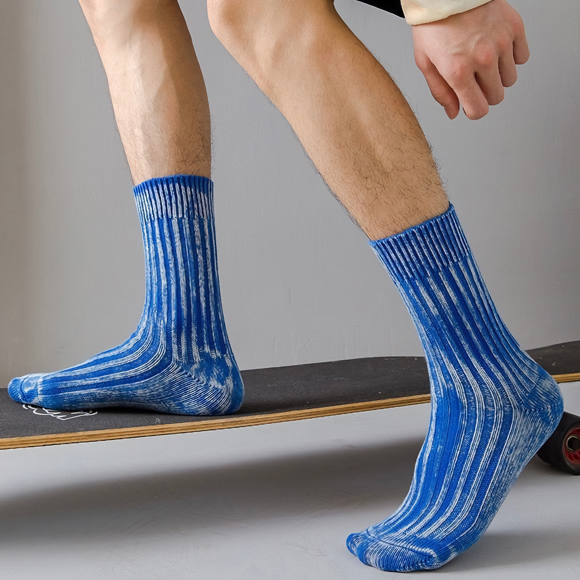Explore our vintage-style gradient cotton socks for men, crafted to bring a trendy, worn-look charm to your wardrobe. These fashion-forward socks add a unique and stylish touch to any outfit, making them the perfect accessory for a modern yet classic appeal.