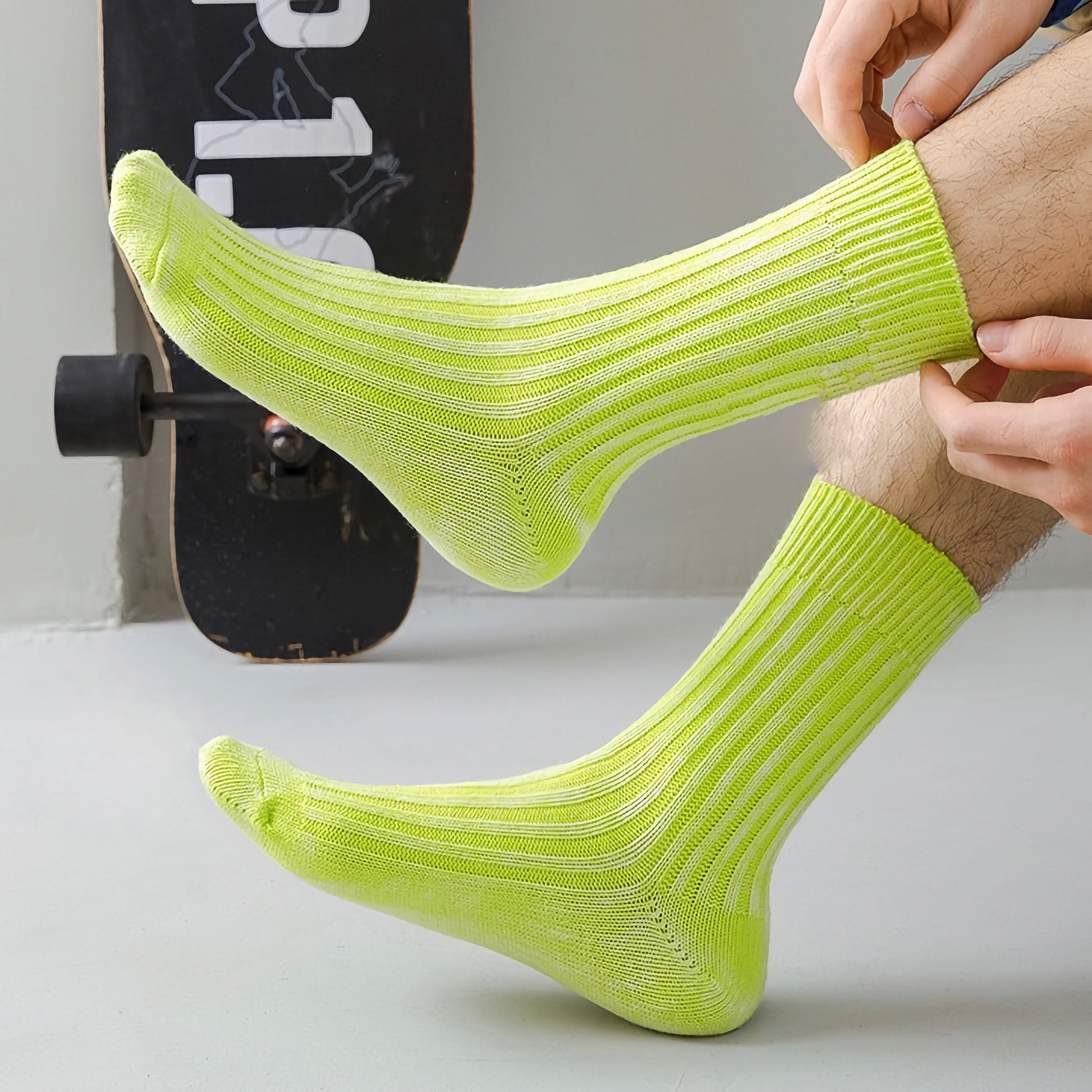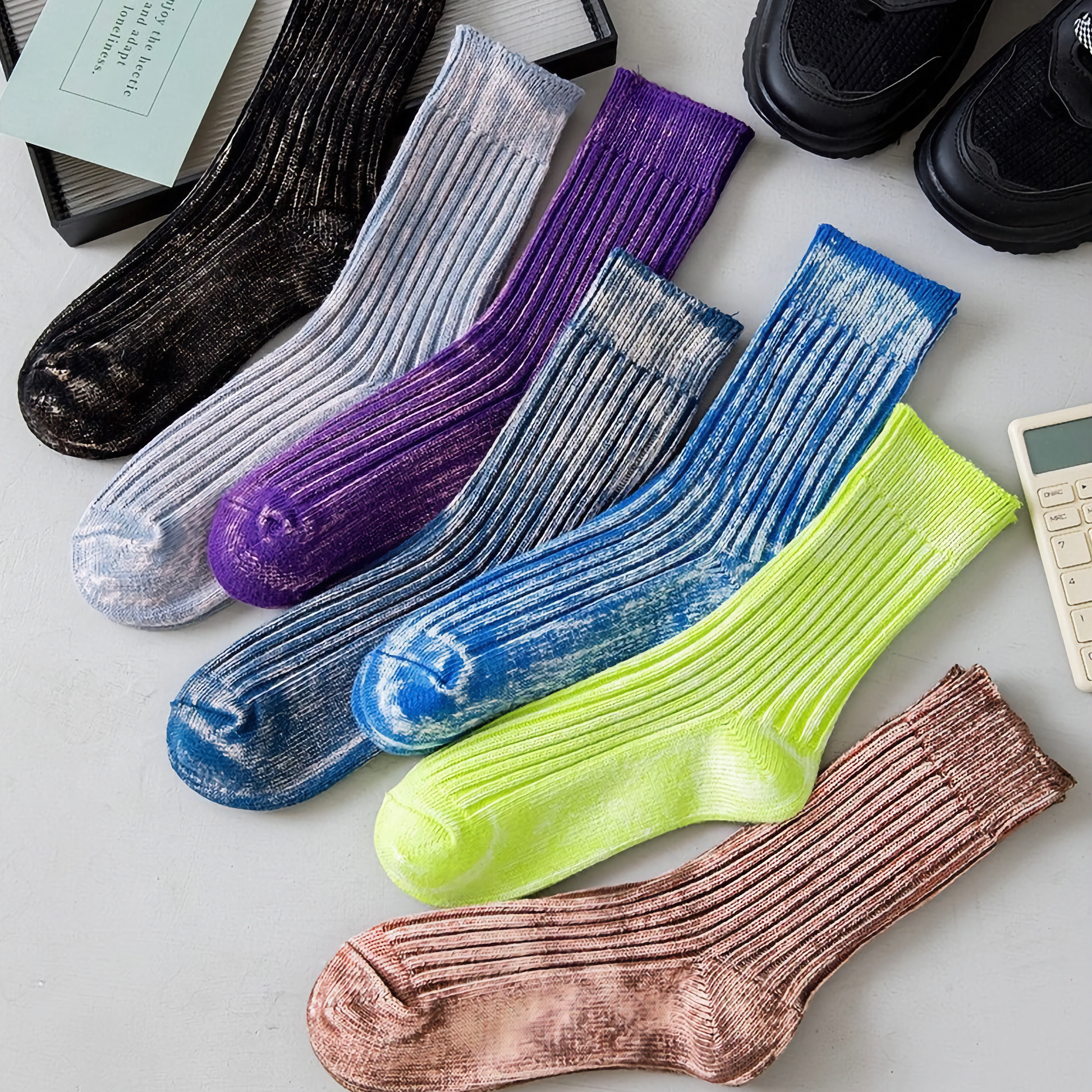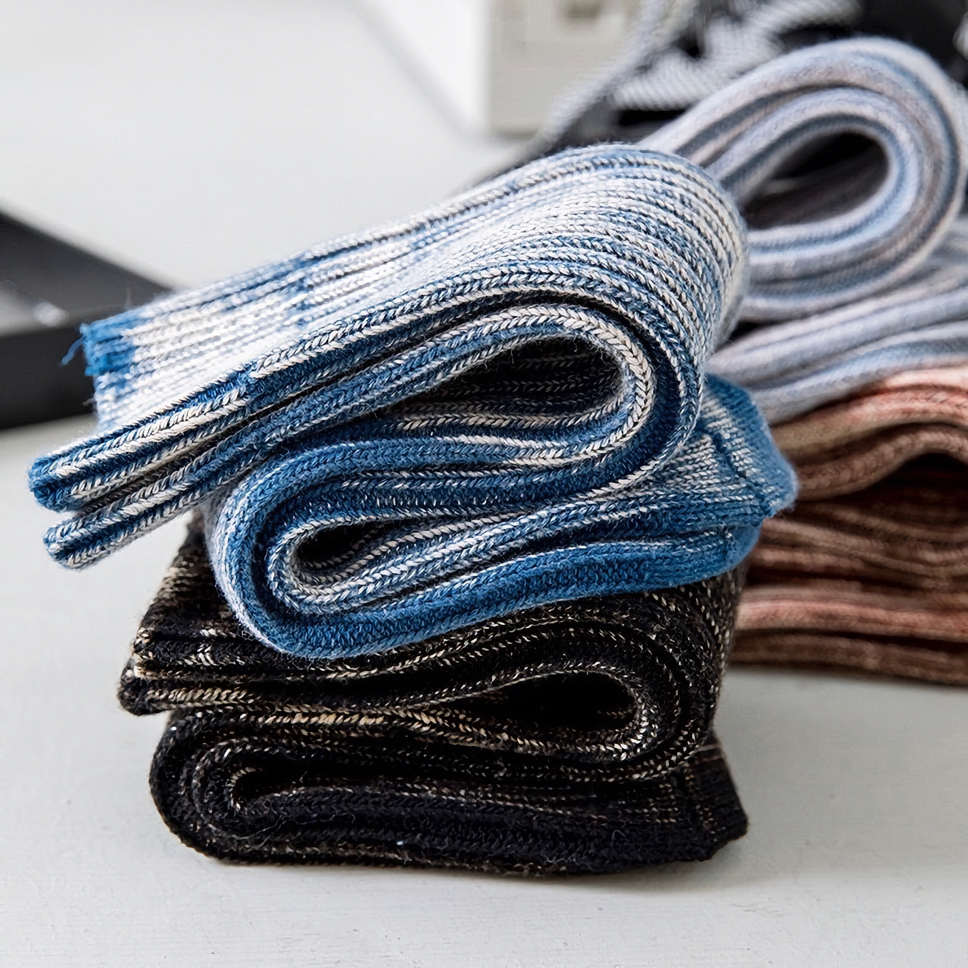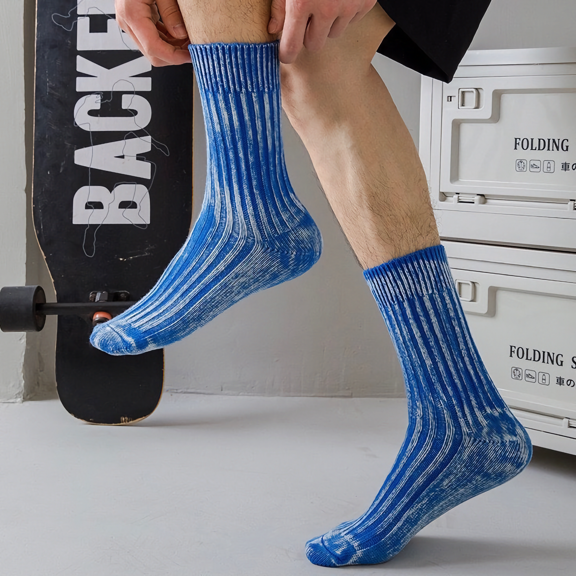 Explore our vintage-style gradient cotton socks for men, crafted to bring a trendy, worn-look charm to your wardrobe. These fashion-forward socks add a unique and stylish touch to any outfit, making them the perfect accessory for a modern yet classic appeal.