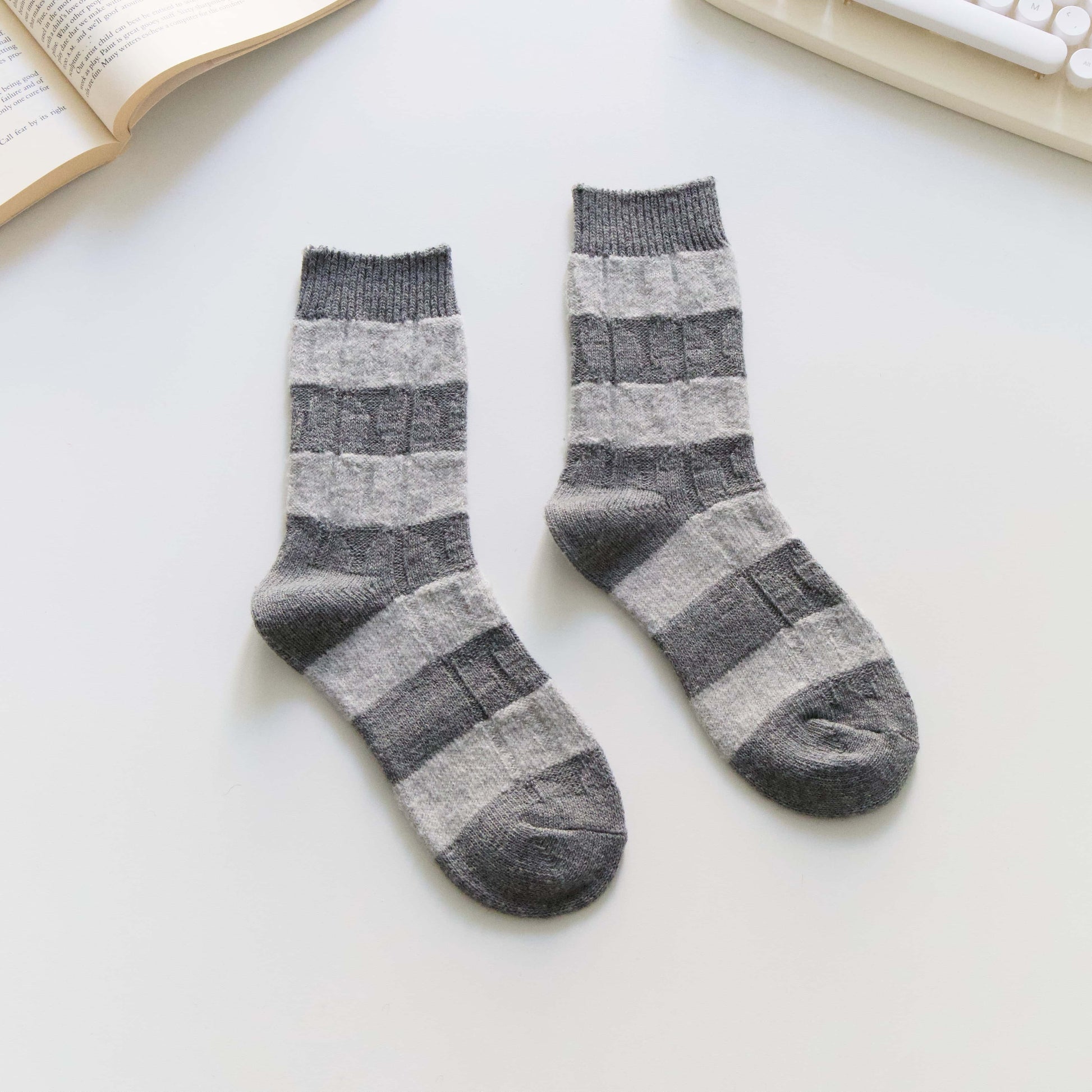 Women’s wool blend striped crew socks with a soft textured knit. Warm, breathable and comfortable for everyday wear in cooler seasons.