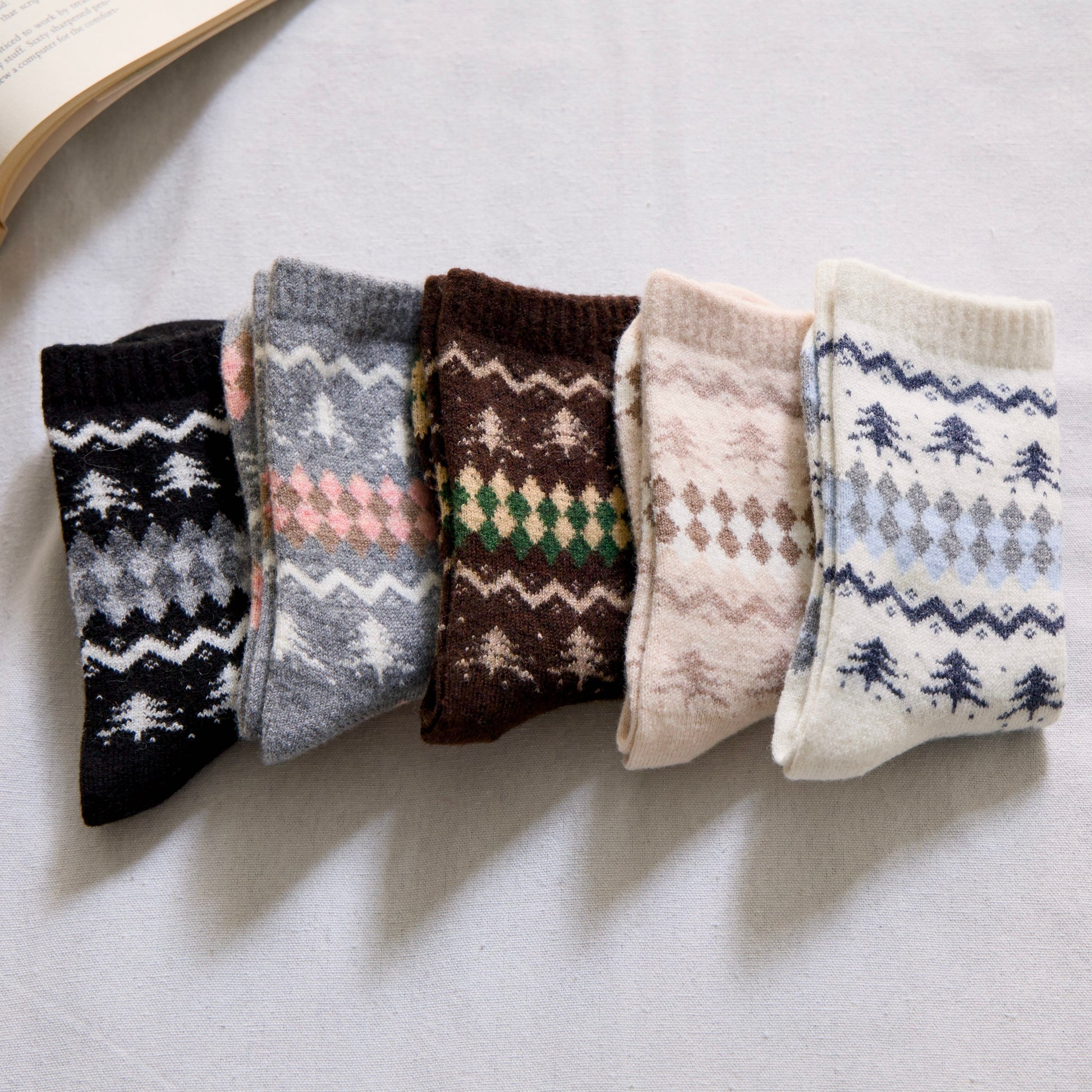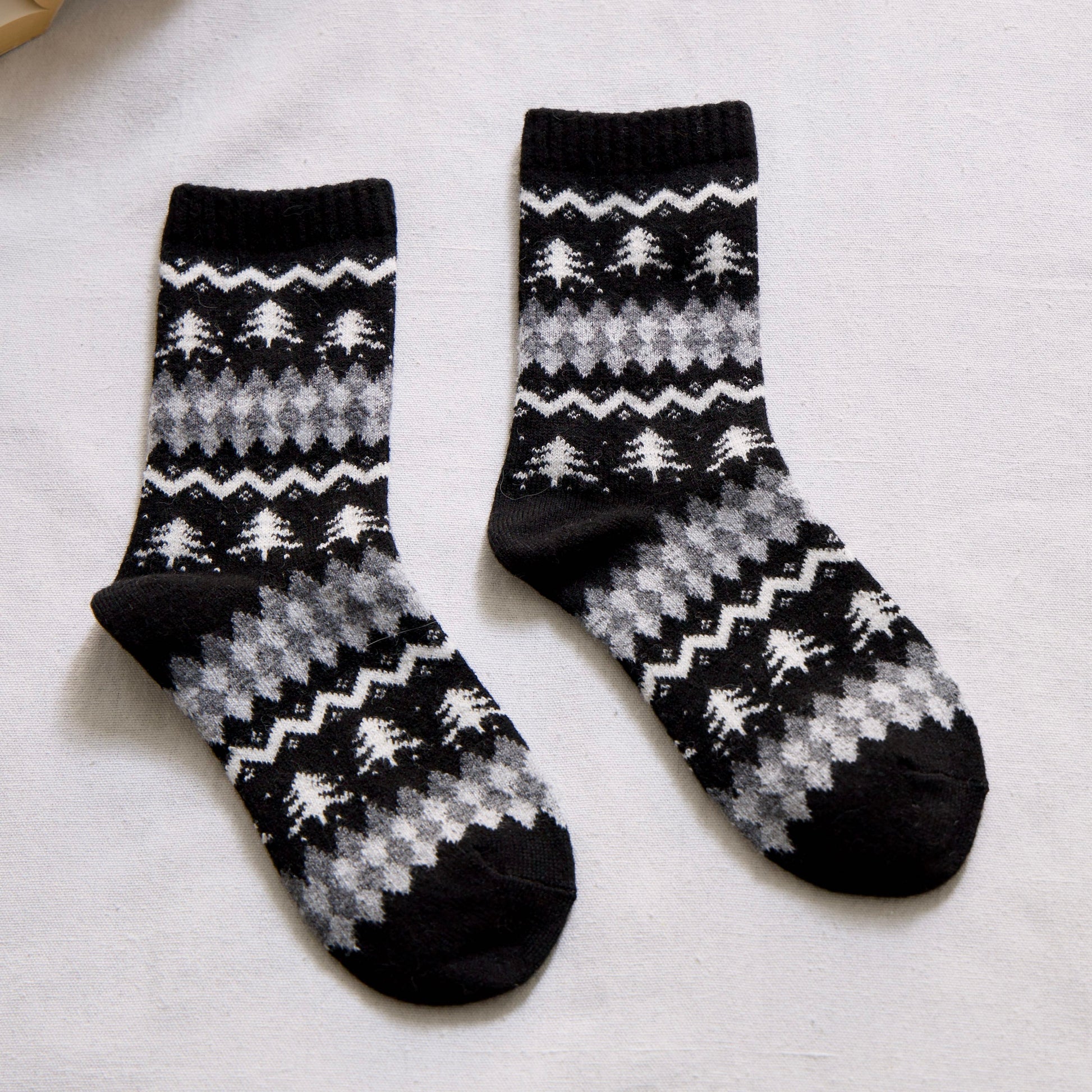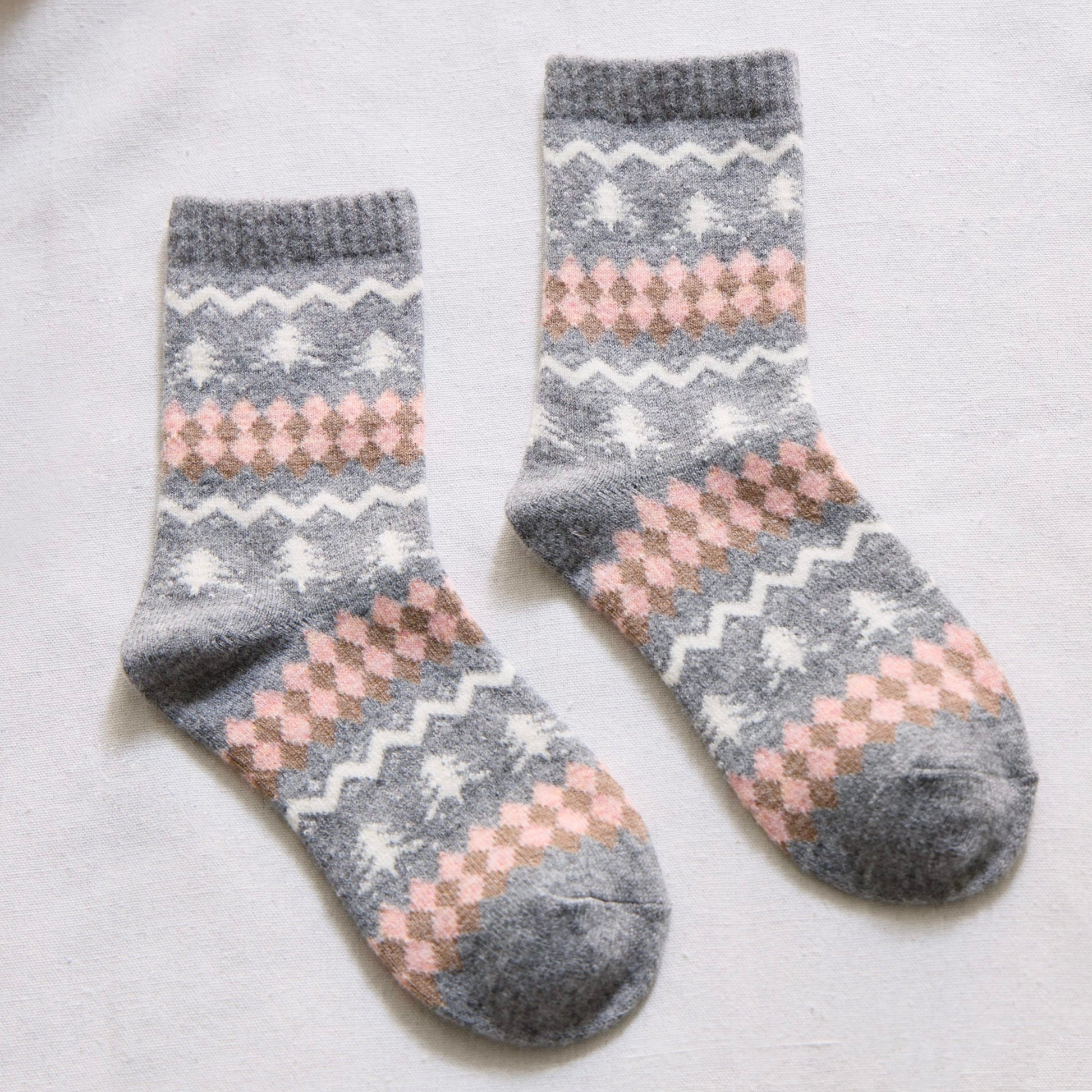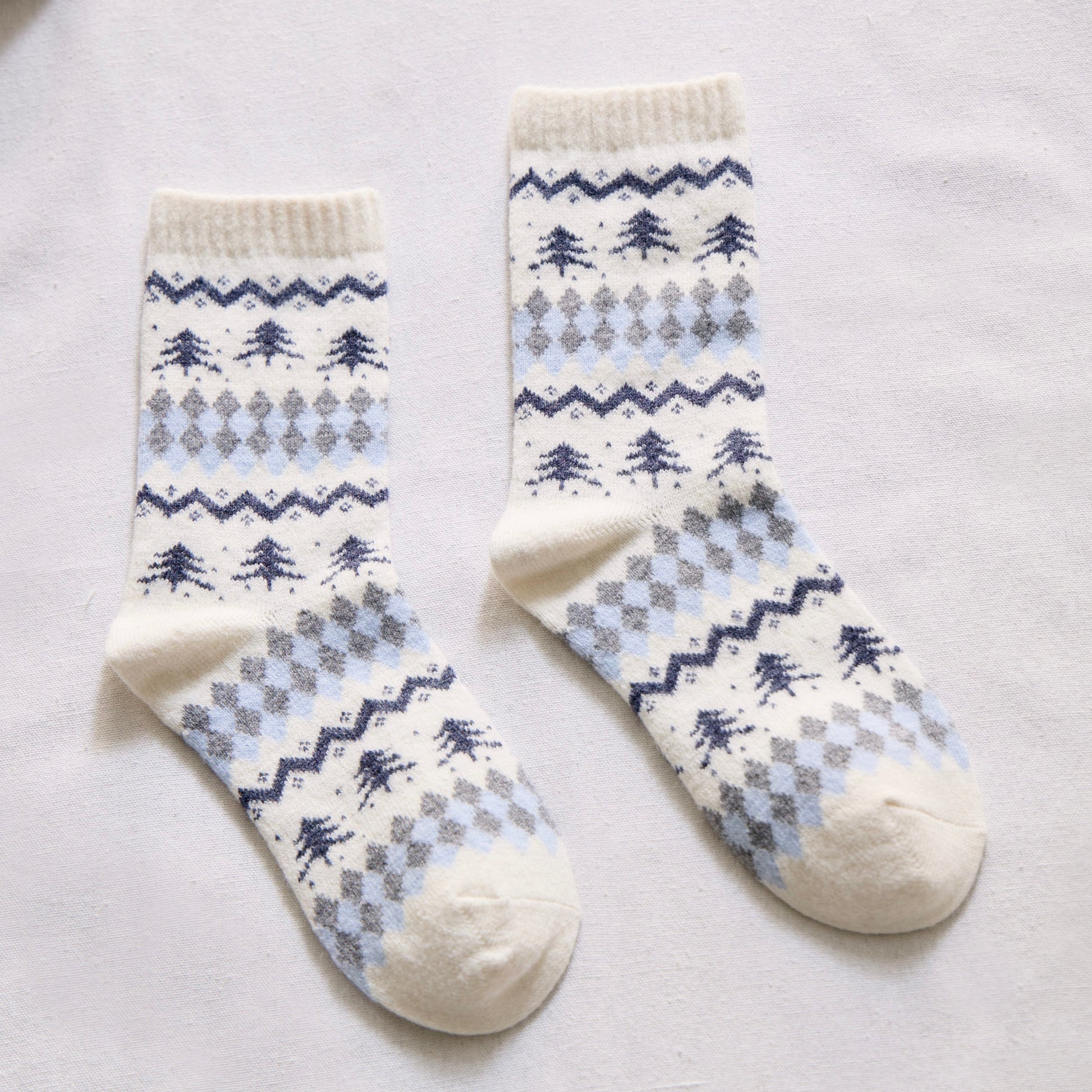 Keep your feet warm with these soft wool-blend winter socks, featuring a cosy Nordic tree pattern and classic argyle design. Perfect for cold days, lounging, or gifting.