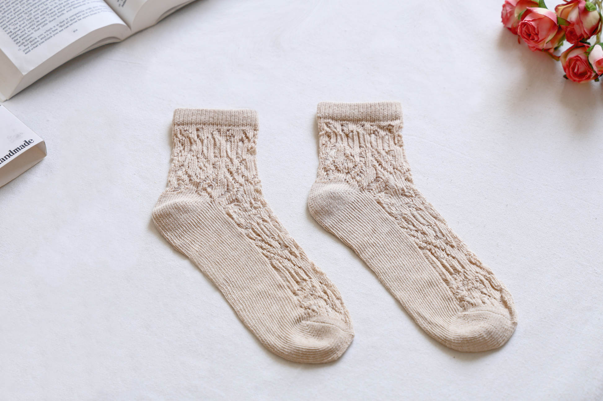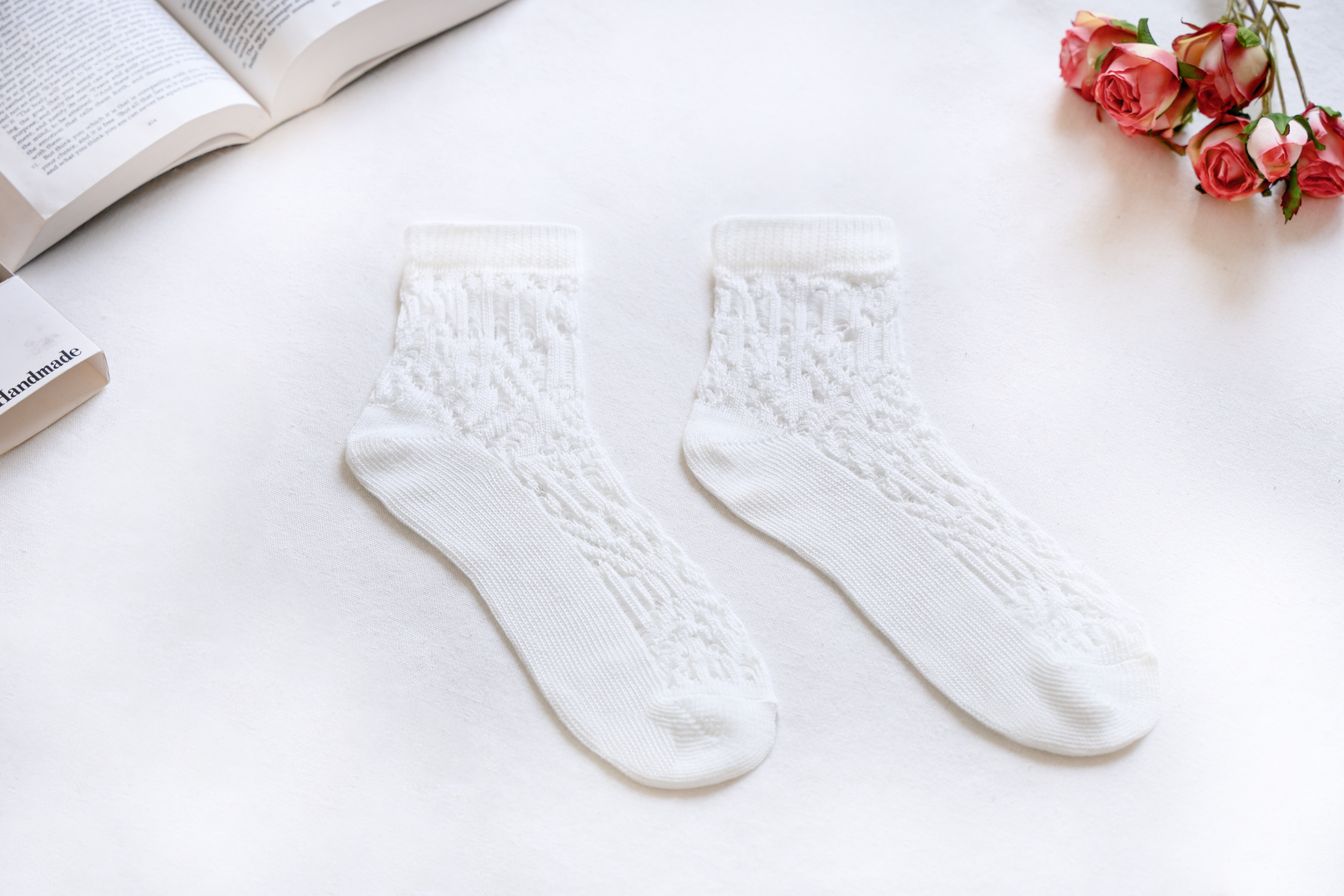 Channel vintage elegance with these women’s retro cotton socks. Featuring a breathable hollow knit design in a short crew length—perfect for everyday summer comfort with timeless charm.