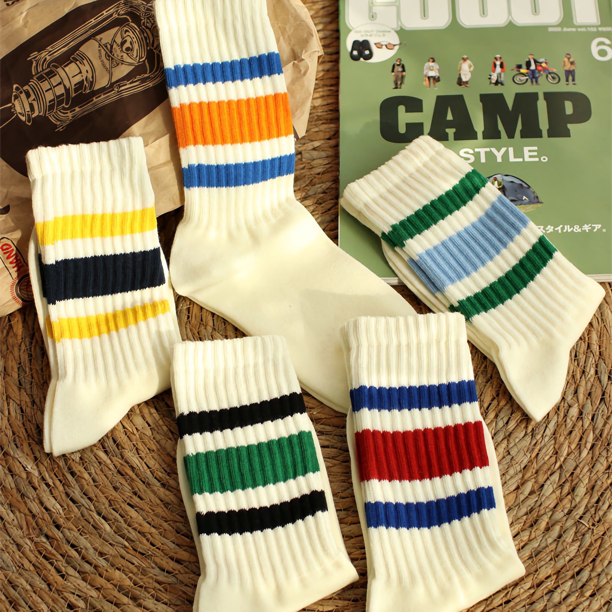 2-Pack Retro Men's Stripe Socks: Vintage Knitted Cotton Athletic Comfort